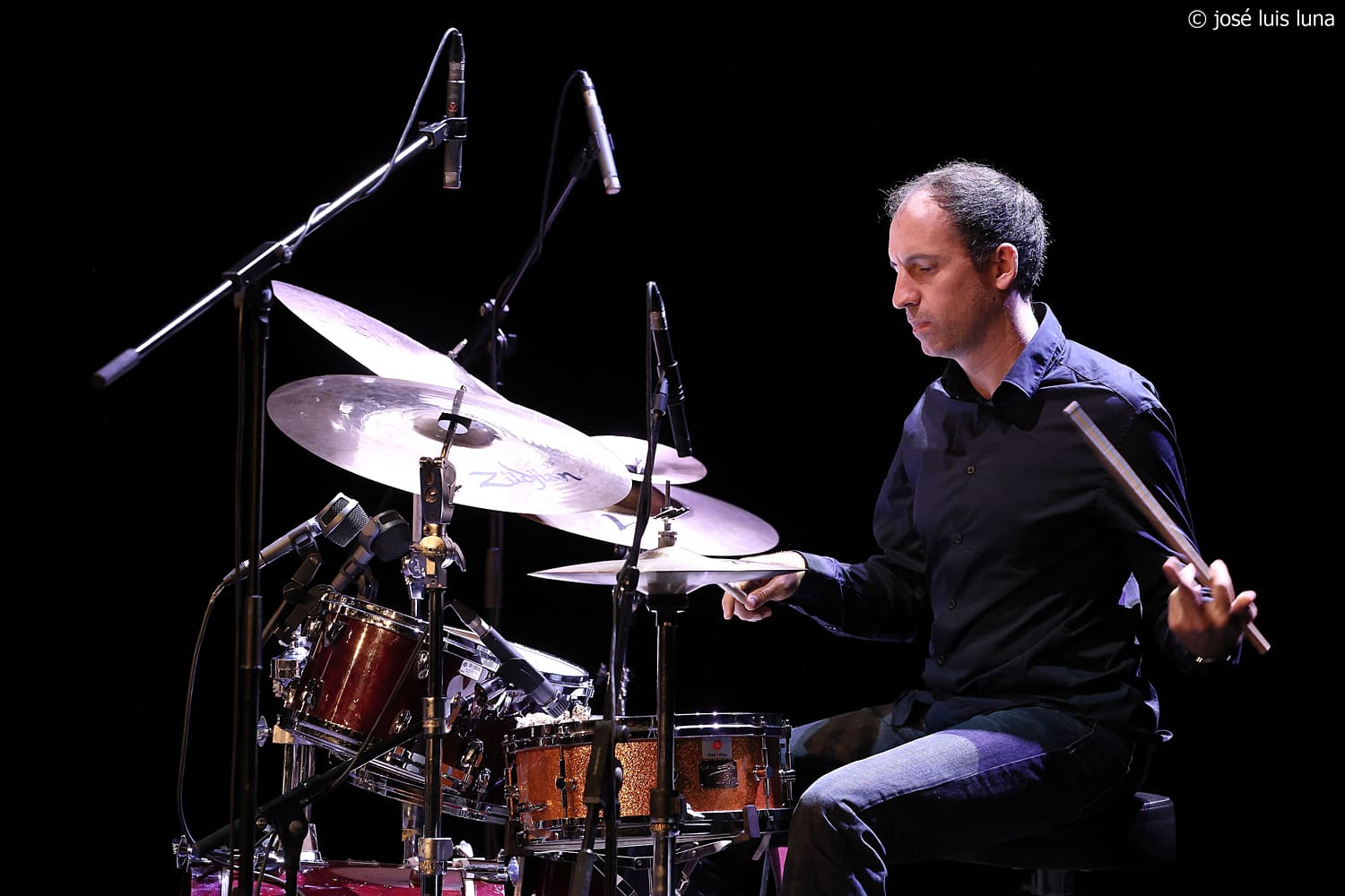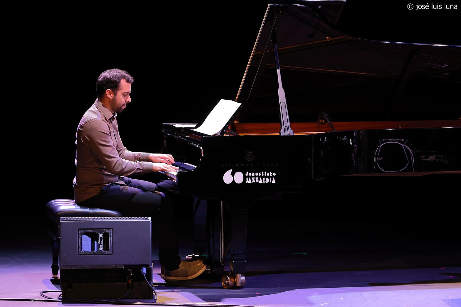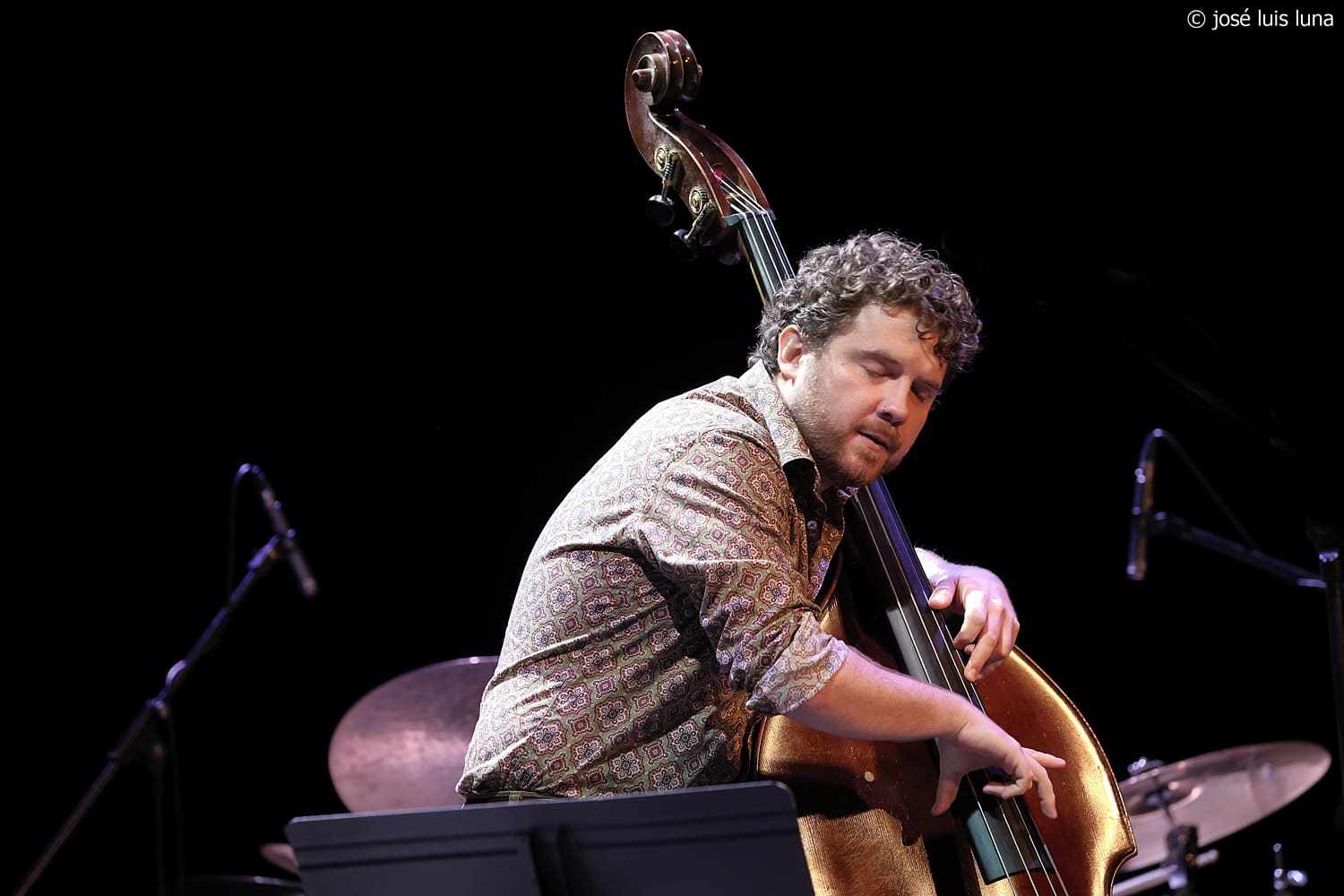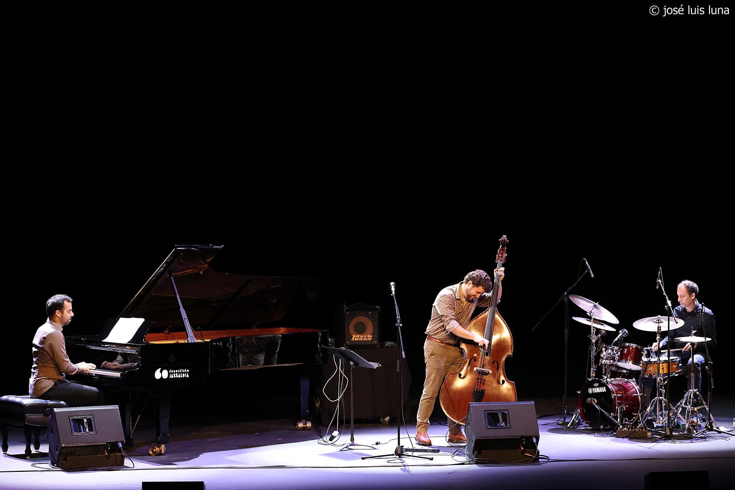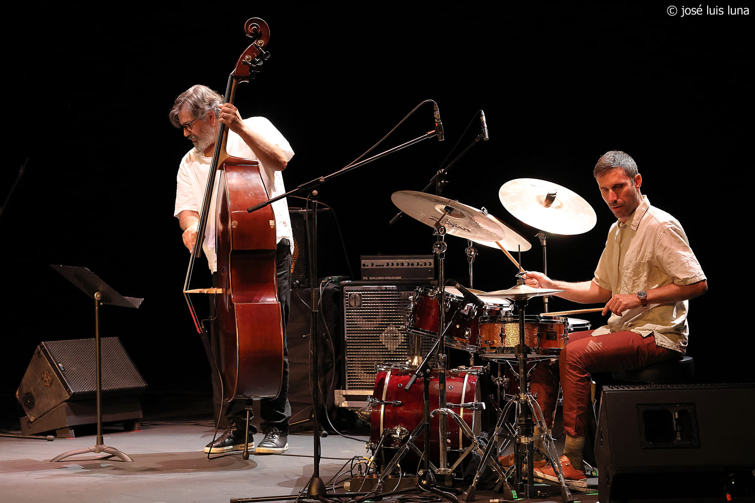 El contrabajista y compositor mallorquín Pere Bujosa lidera el trío junto a Xavi Torres, piano y Joan Terol, batería, en el que exploran la fusión entre la música popular balear y su propia visión contemporánea. Su propuesta, ecléctica y abierta, combina jazz, electrónica y tradición mediterránea, siempre con espacio para la improvisación y la experimentación. El repertorio rescata y reinterpreta obras de compositores vinculados a las islas Baleares, desde figuras poco conocidas hasta nombres como Chopin o Jaume Mas Porcel, aportando una mirada profundamente personal tejiendo ritmos y texturas con una visión fresca del jazz contemporáneo. Xavi Torres destaca por su capacidad lírica y sensibilidad en el fraseo, mientras Joan Terol, sólido e intuitivo, aportó curiosidad y apertura.