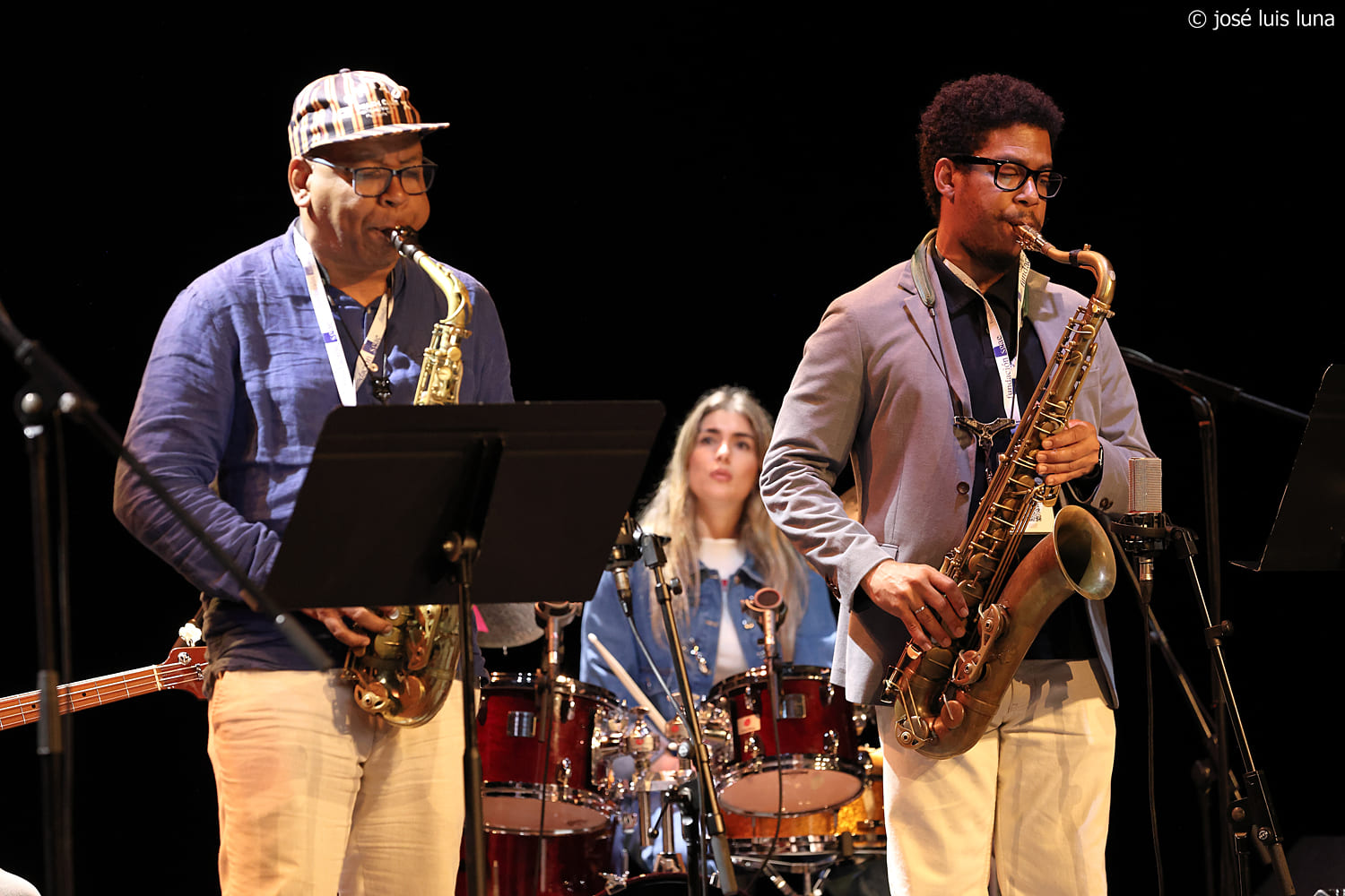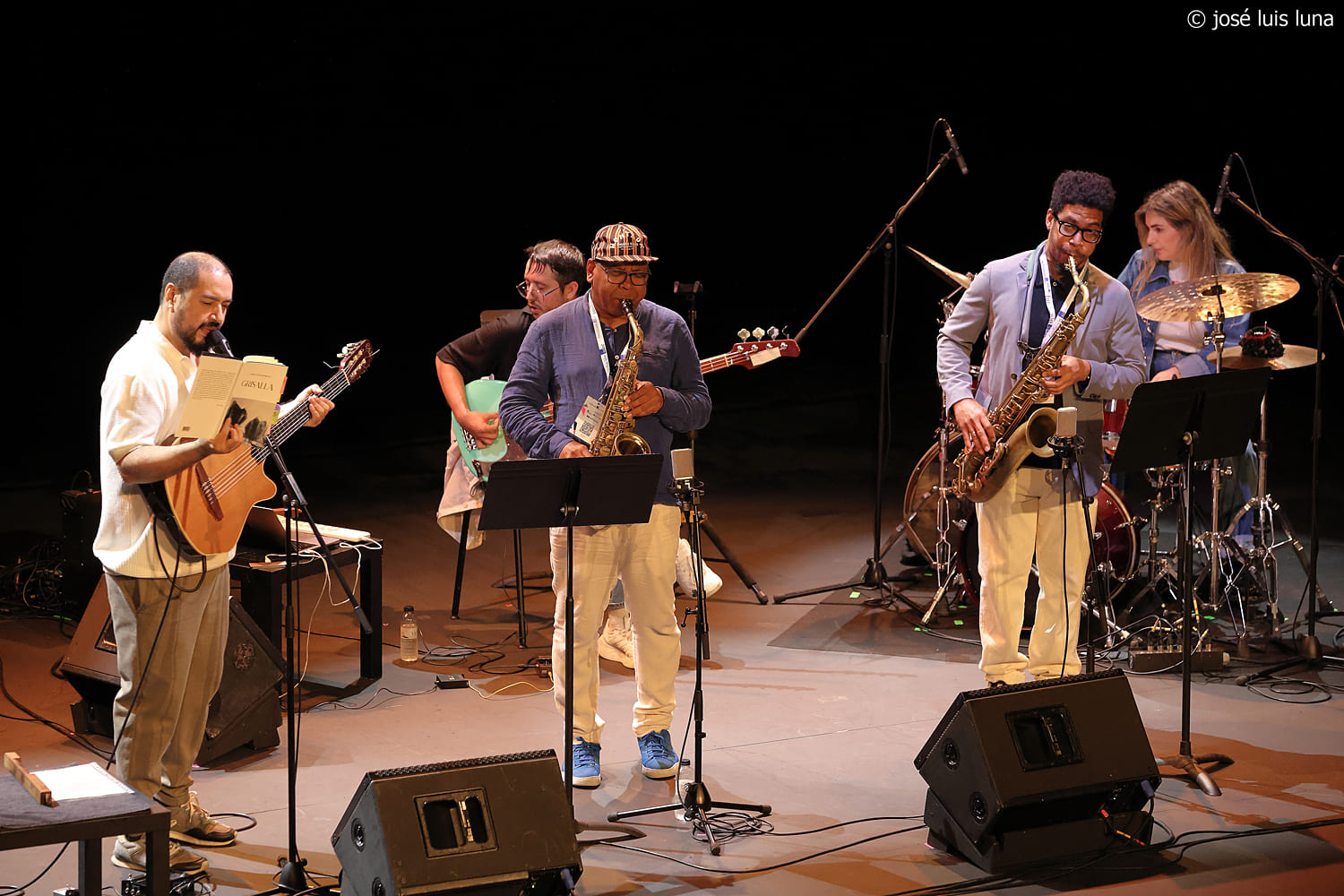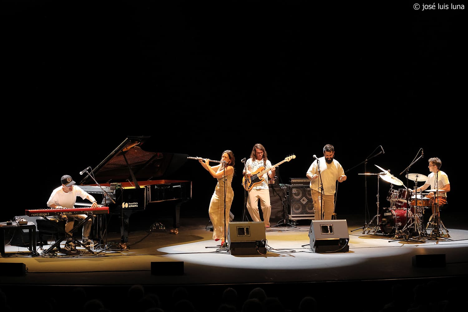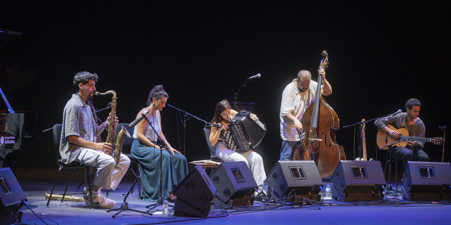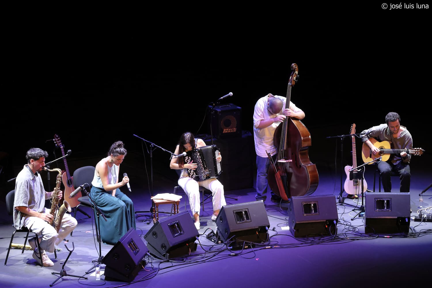 También escuchamos a Maite Ruiz de Erentxun, acordeón, Aura Mauri, voz, Crístopher Pérez, saxofón, Alesander Peña, guitarra, Manuel Luque, contrabajo. Conforman un quinteto acústico en el que el jazz actúa como eje estructural y marco de integración entre tradición y exploración. El grupo interpretó composiciones originales inspiradas en la cultura vasca, proyectándola hacia nuevas estéticas y lenguajes.