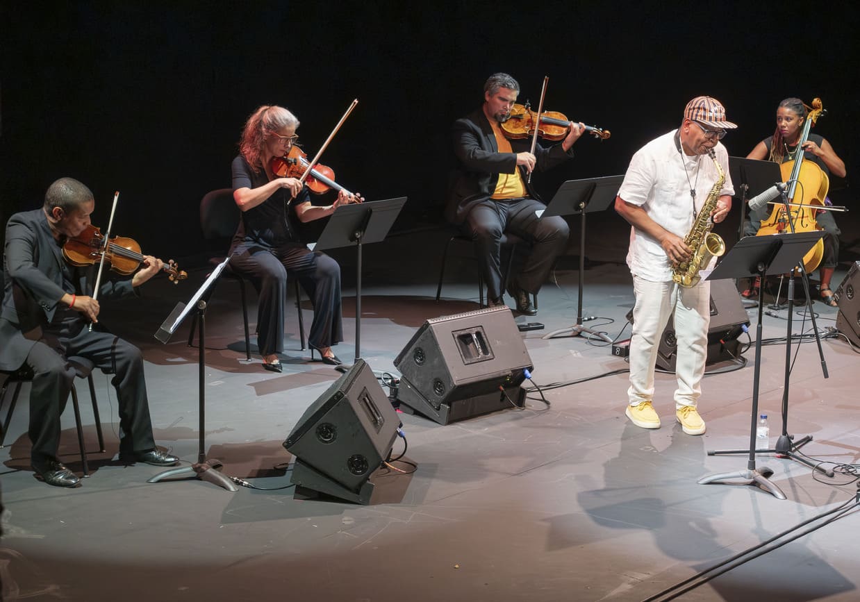Desde Cuba hasta Madrid, pasando por Nueva York, Román Filiú presentó su cuarteto de cuerdas con la obra Suite Oriental, una propuesta inspirada en la rica tradición musical de Santiago de Cuba y en la escritura clásica para cuerdas. Suite Oriental se presenta como una serie de movimientos en los que convergen la precisión formal de la música de cámara, la libertad improvisadora del jazz, los recursos expresivos de la música contemporánea y la riqueza rítmico-melódica del folclore santiaguero (tumba francesa, la conga santiaguera, la trova y el bolero). Es una obra de diez temas originales y dos arreglos minuciosos, con espacios para la improvisación solista, en un diálogo entre tradición y modernidad. Con Román Filiú O’Reilly, saxo alto, flauta, dirección musical, Javier Filiú O’Reilly, violín, Zaloa Gorostidi Bidaurrazaga violín, Osvaldo Antonio Enrique Castro, viola, Caridad Rosa Varona Borges, violonchelo.