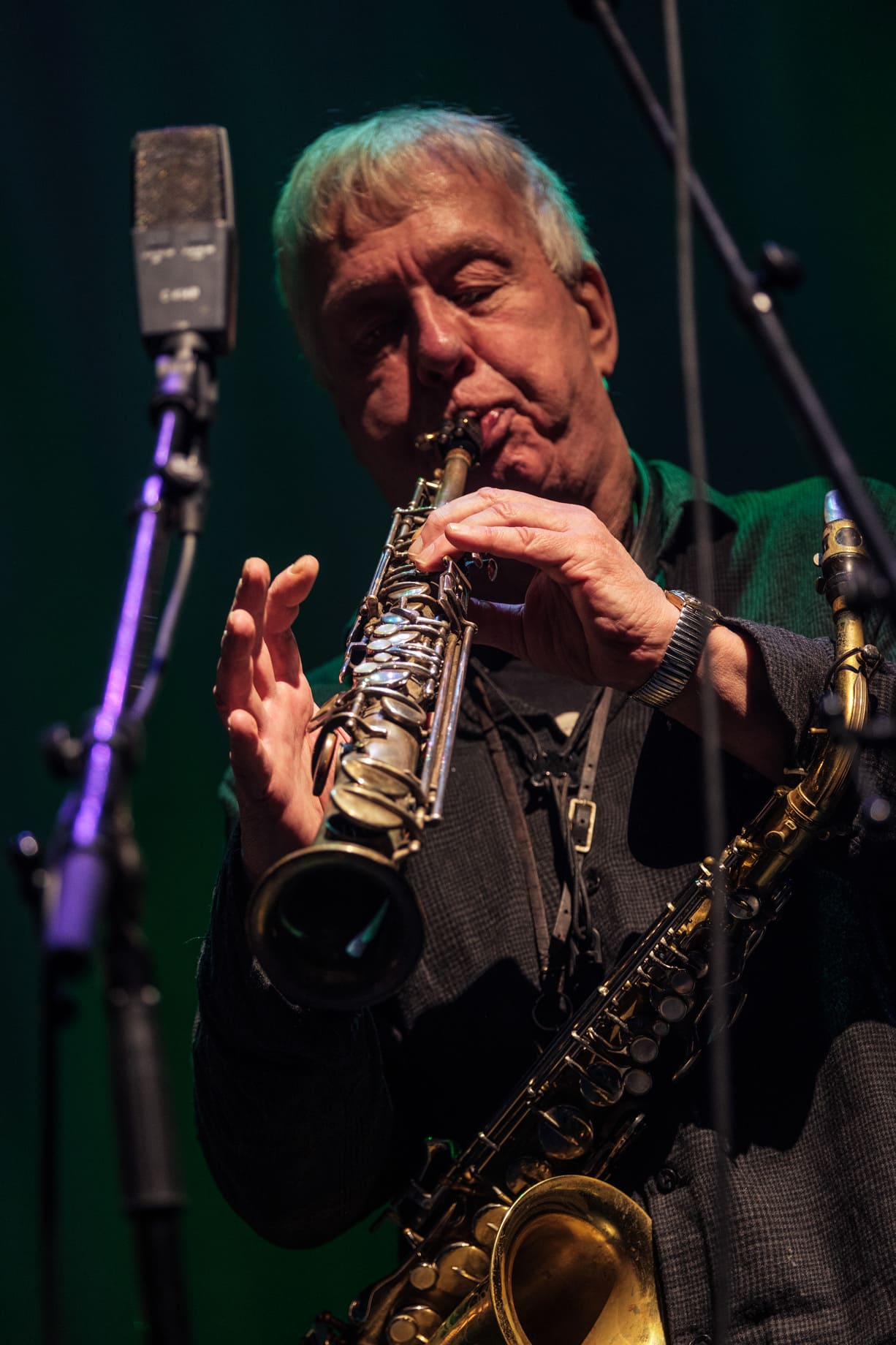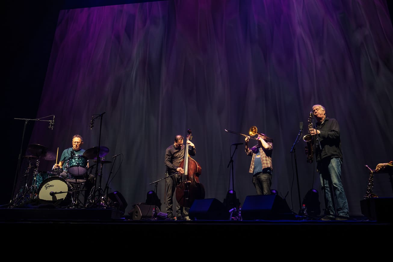 The second set, Ruf der Heimat, ventured into the realm of radical free improvisation. Saxophone (Thomas Borgmann), trombone (Christof Thewes), double bass (Jan Roder) and drums (Willi Kellers) constructed a continuous, tempo-less flow clearly rooted in the legacy of free jazz. The music unfolded in waves: intense collective passages alternating with quieter moments, partial dialogues or solo explorations.