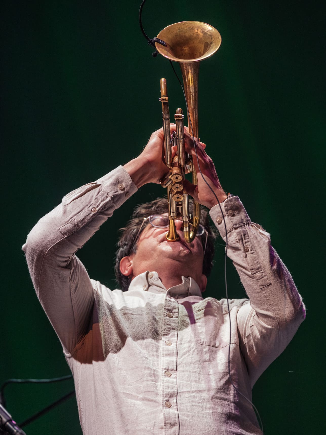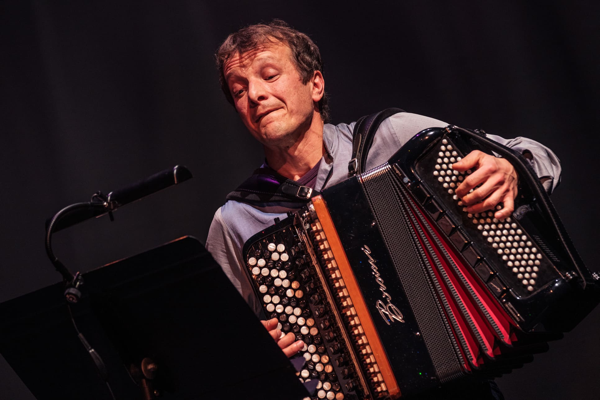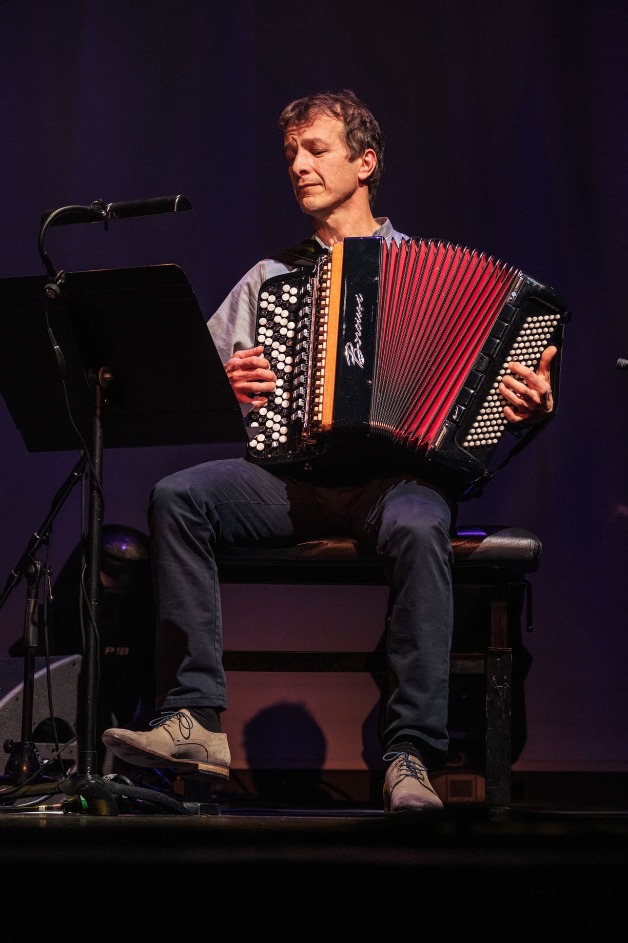 The evening at Theater Münster closed with the Richard Koch Quintet and their project Rays of Light. A young and daring formation: trumpet (Koch, leader and composer), violin (Fabiana Striffler), accordion (Valentin Butt), double bass (Andreas Lang) and percussion (Nora Thiele). From the opening piece — a flowing 3/4 with subtle rubato — the freshness of the group was evident.