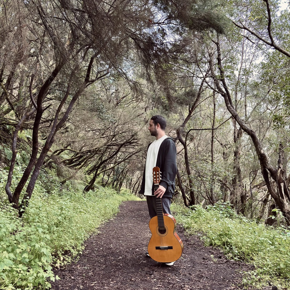 Y sí, ha habido una etapa de mi vida en la que me he fijado más en melodías muy sencillas y eso ha influido en mi tocata, de hecho, si tú pones lo que yo toco a un tempo lento te vas a dar cuenta de que son consecuciones de melodías muy sencillas y que no estoy tampoco inventando nada. A la hora de improvisar intento cantar lo que estoy haciendo y escuchar a los demás para luego poder contestar a eso que están haciendo ellos. Y esto es importante, la improvisación la entiendo como si fuese todo un global donde mi instrumento es una parte de toda la música que está sonando y yo lo que estoy aplicando es un timbre y unas texturas a toda esa composición que es todo este paisaje. Entonces puede no haber guitarra también y eso está bien, y de hecho cuando un instrumento suena durante un tiempo y de repente se calla pues se crea otra cosa totalmente diferente. Como que incluso dejando de tocar o tocando también lo entiendo como si fuese parte de la orquestación, que no es tanto pensar la improvisación como “mi momento”, sino que lo pienso como un todo, como capas. Entonces cuando dejo espacios y demás también lo entiendo como parte de esa orquestación.